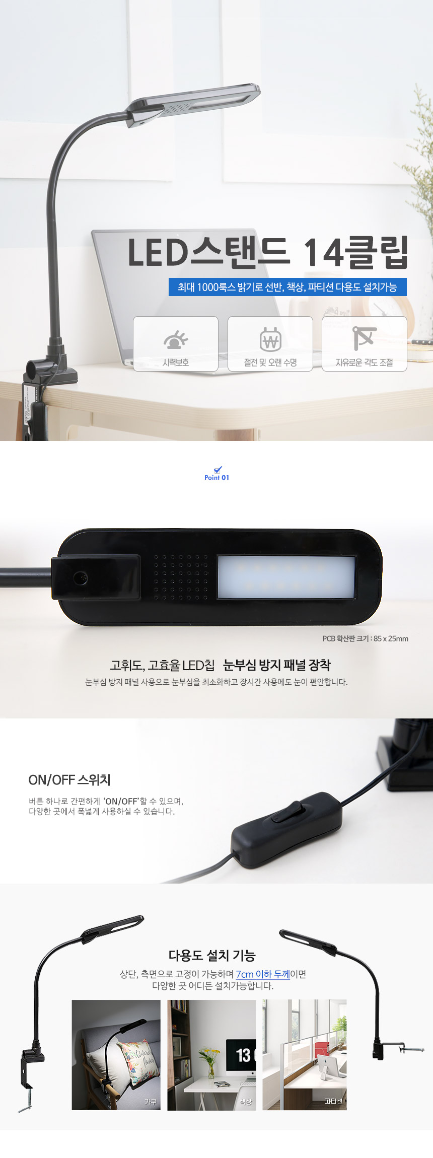 LED스탠드 14클립 / 클립형 스탠드 독서등 LED스탠드 이미지/