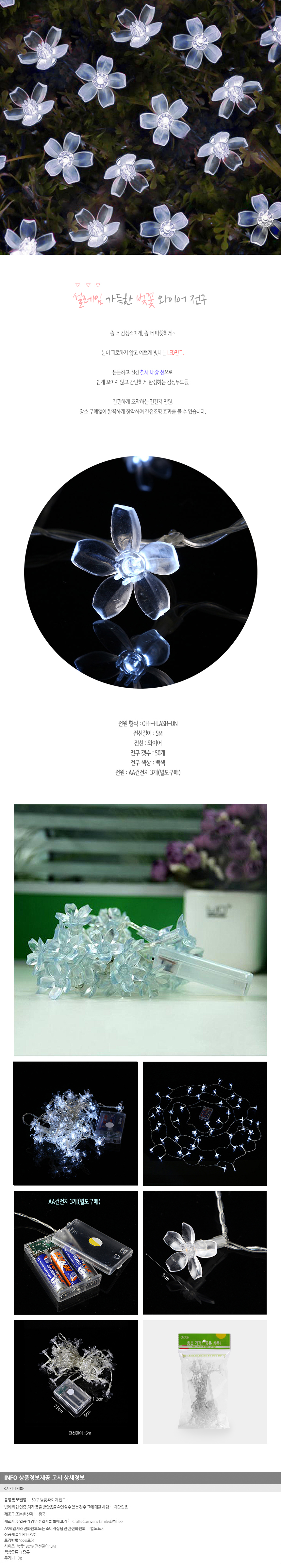 플라워전구장식 (50구) 차박 캠핑 분위기 장식 인테리어 무드등