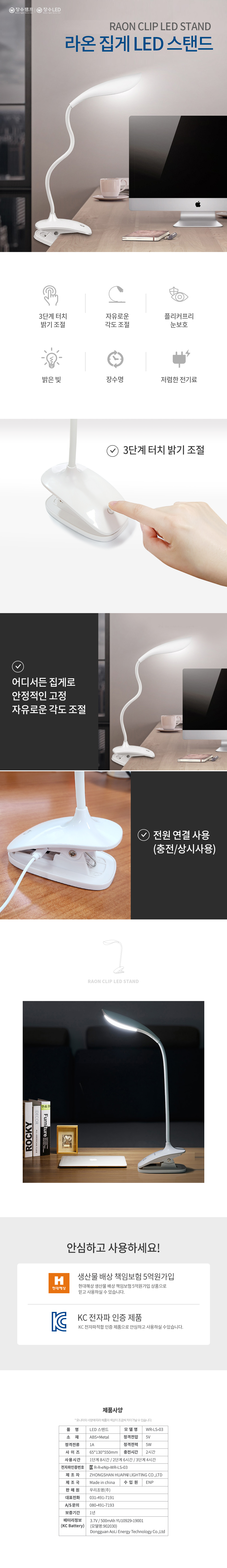 LED스탠드조명 집게형 USB충전식 클립형 휴대용스탠드 침대독서등
