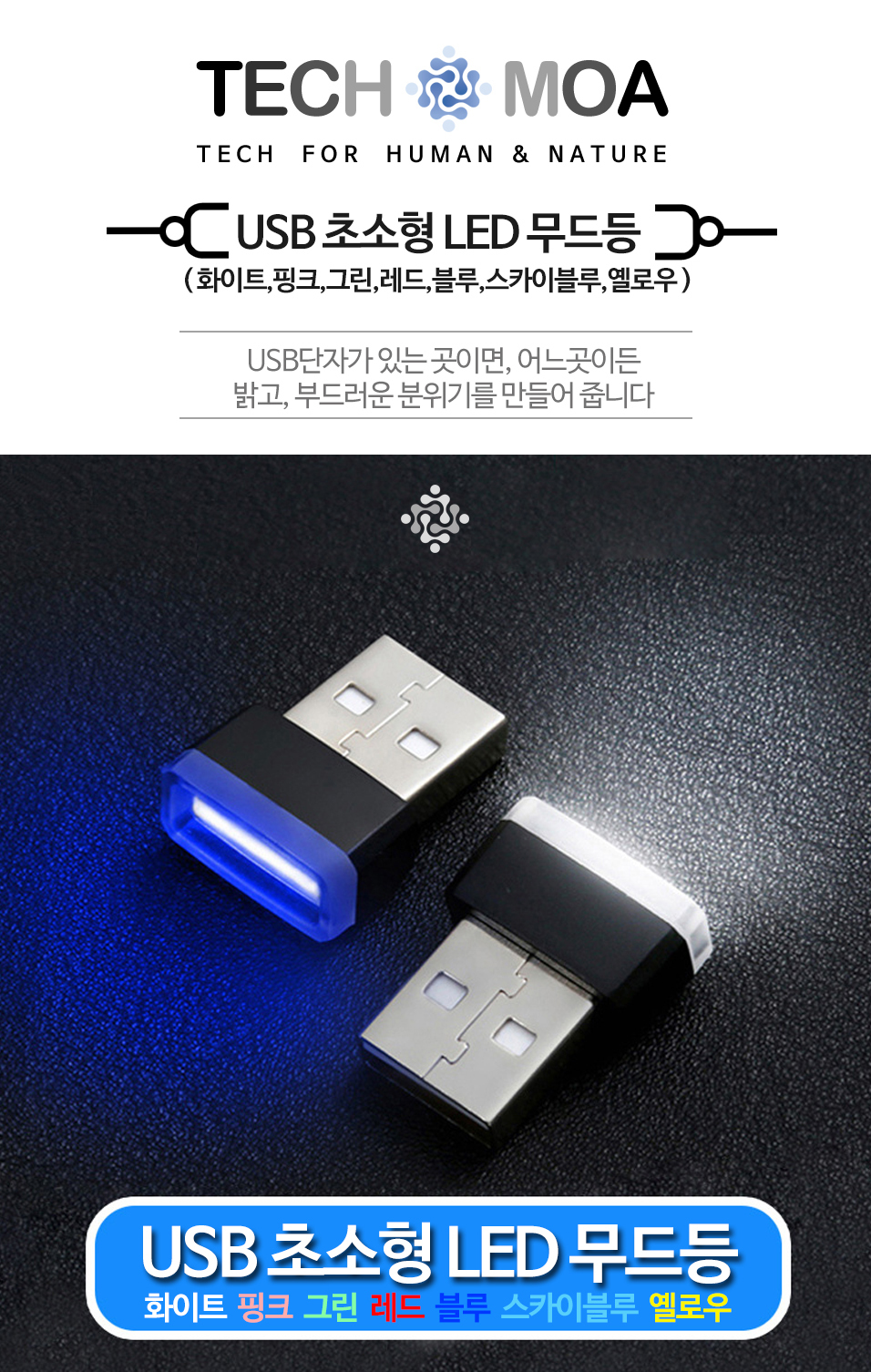 초미니 USB LED 무드등 차량 PC 노트북 보조배터리
