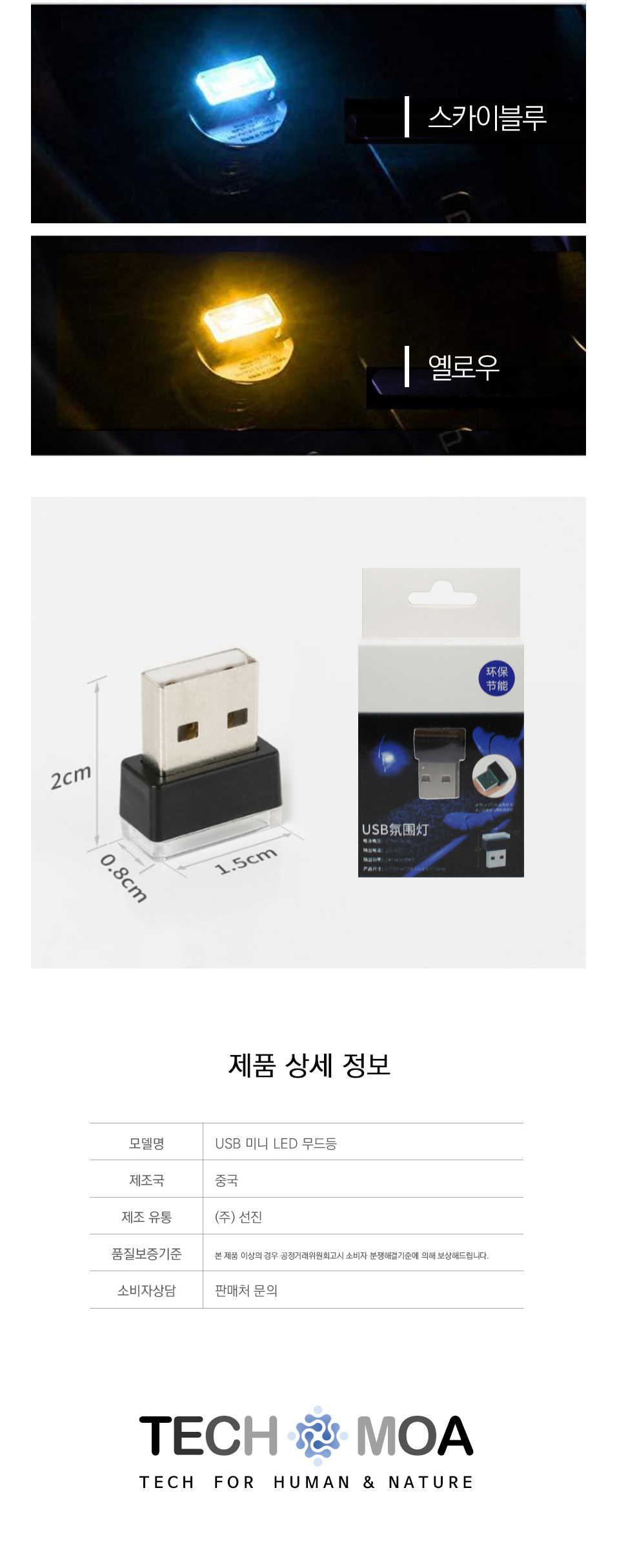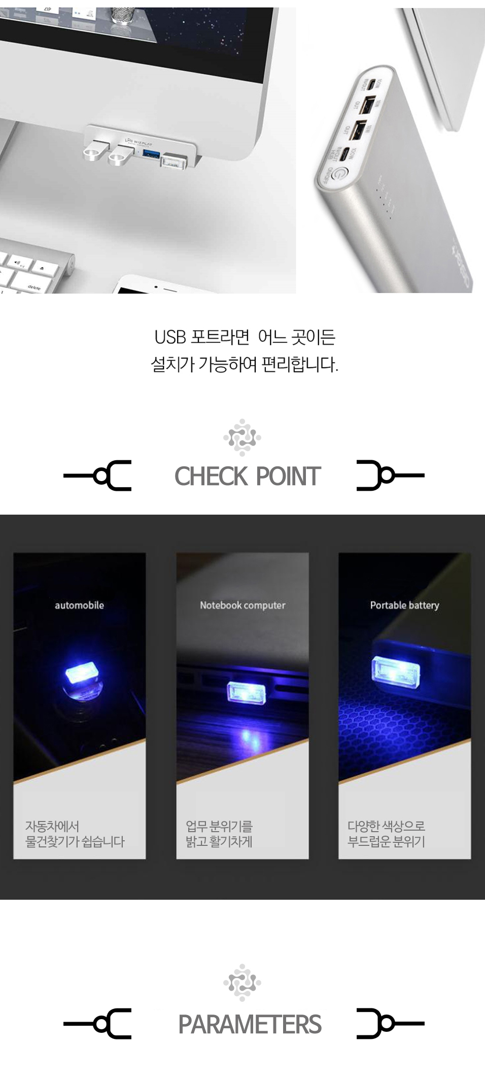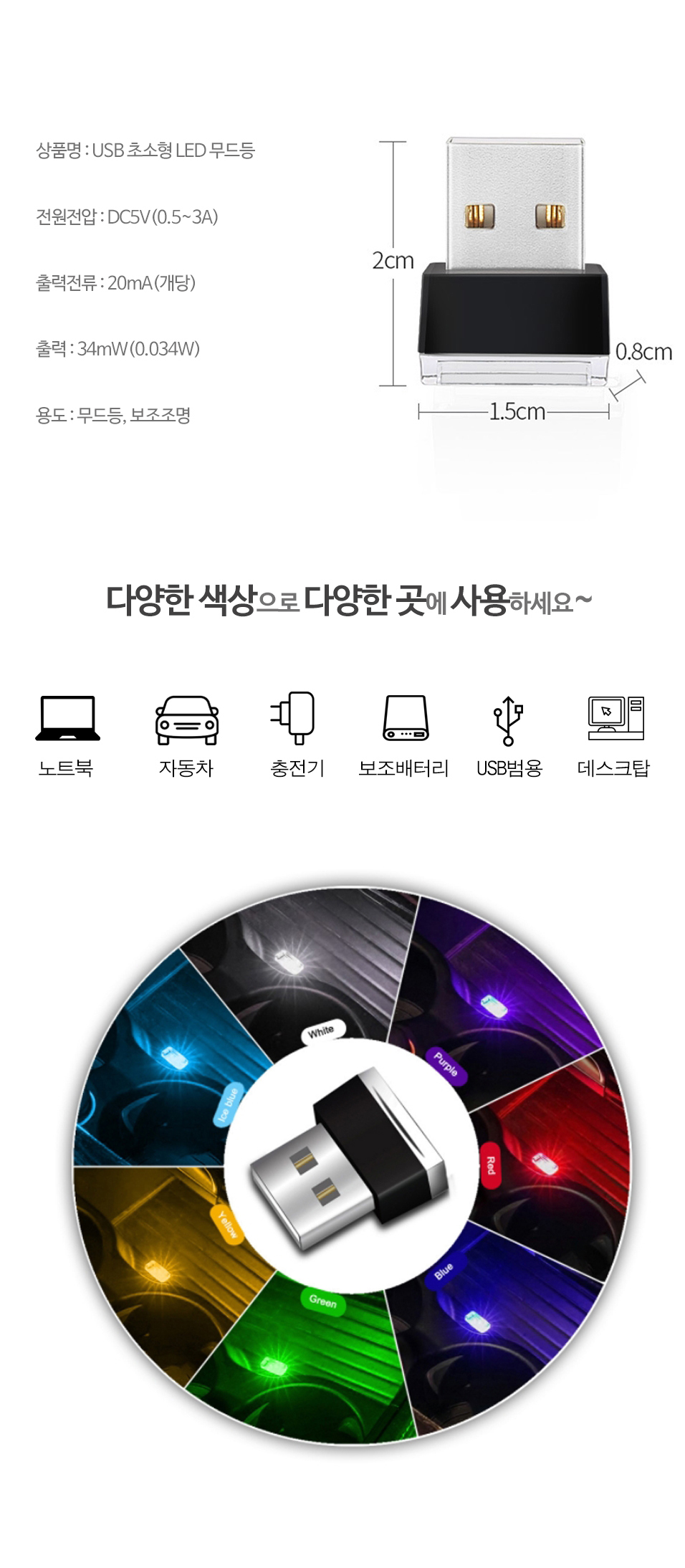 <상품명 : 초미니 USB LED 무드등 차량 PC 노트북 보조배터리>