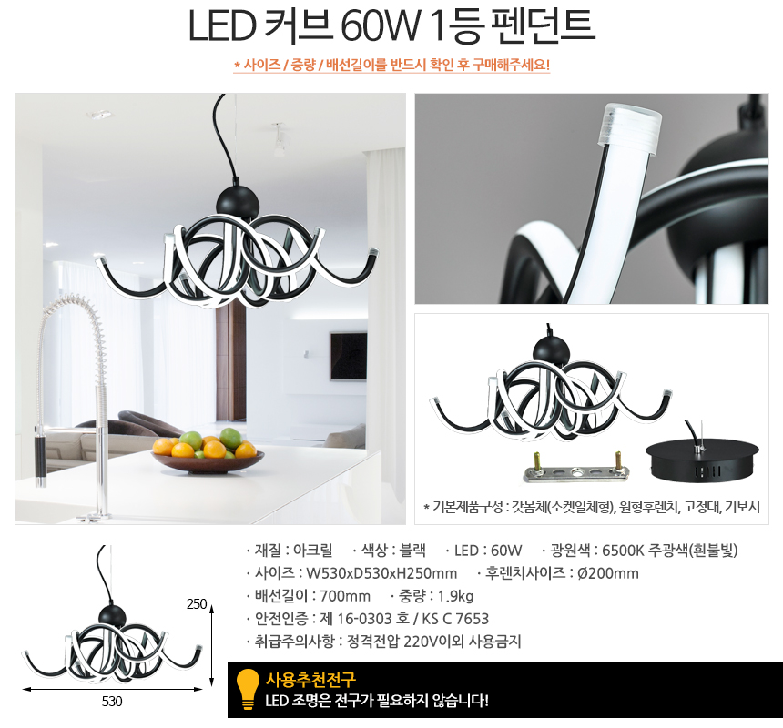 • 품명 및 모델명LED커브 60W 1등 펜던트
