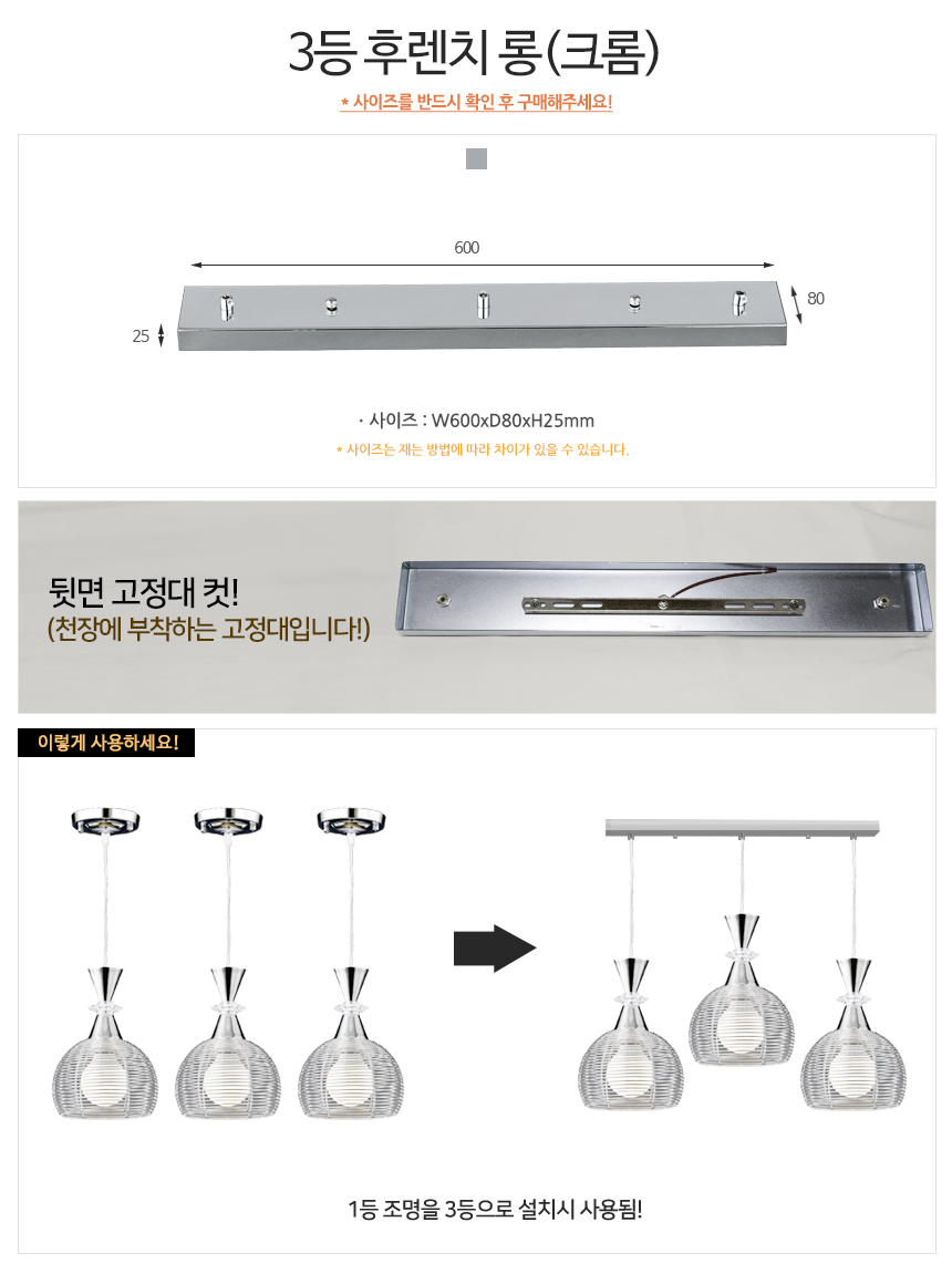 3등 후렌치 롱 - 크롬/인테리어조명/펜던트조명/식탁등/조명기구/후렌치/인테리어소품/3등