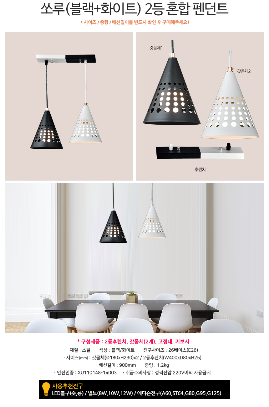 쏘루 2등 혼합 펜던트/식탁등/포인트조명/주방등/카페/인테리어조명/예쁜조명/식탁인테리어