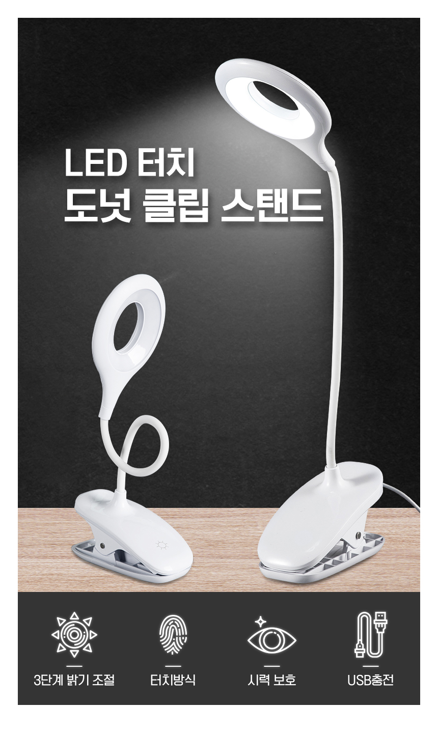 [지니몰] 도넛 클립 스탠드/책상 LED독서등 USB스탠드 무드등 미니스탠드 램프 책상조명