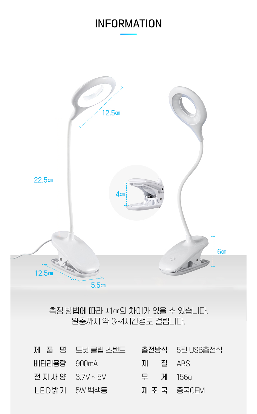 [지니몰] 도넛 클립 스탠드/책상 LED독서등 USB스탠드 무드등 미니스탠드 램프 책상조명 이미지/