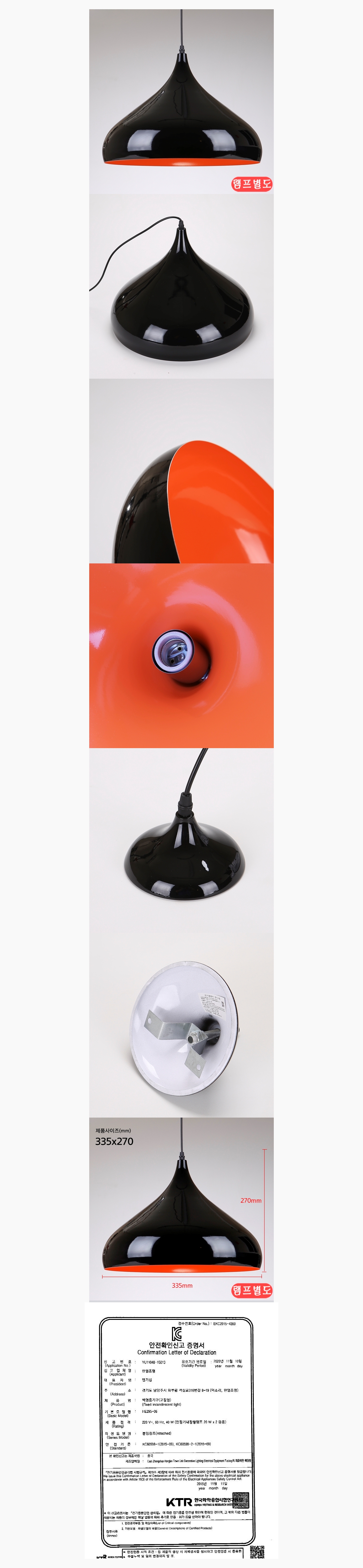 인테리어 홈조명 베스킨 펜던트등 소 1.2m 검정주황