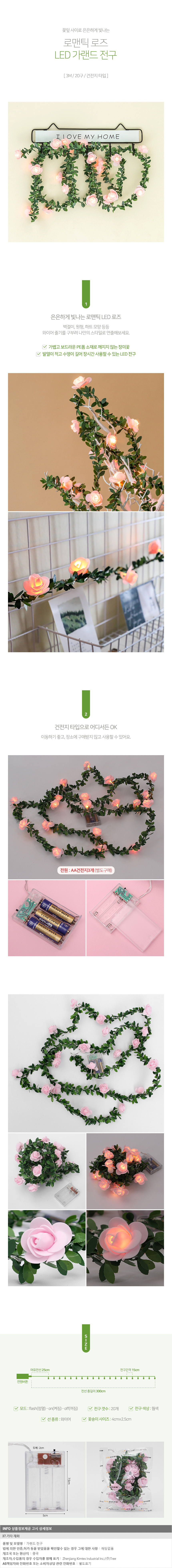 LED가랜드 장미전구 20구(핑크S) 차박 캠핑 분위기 장식 인테리어 무드등 이미지/