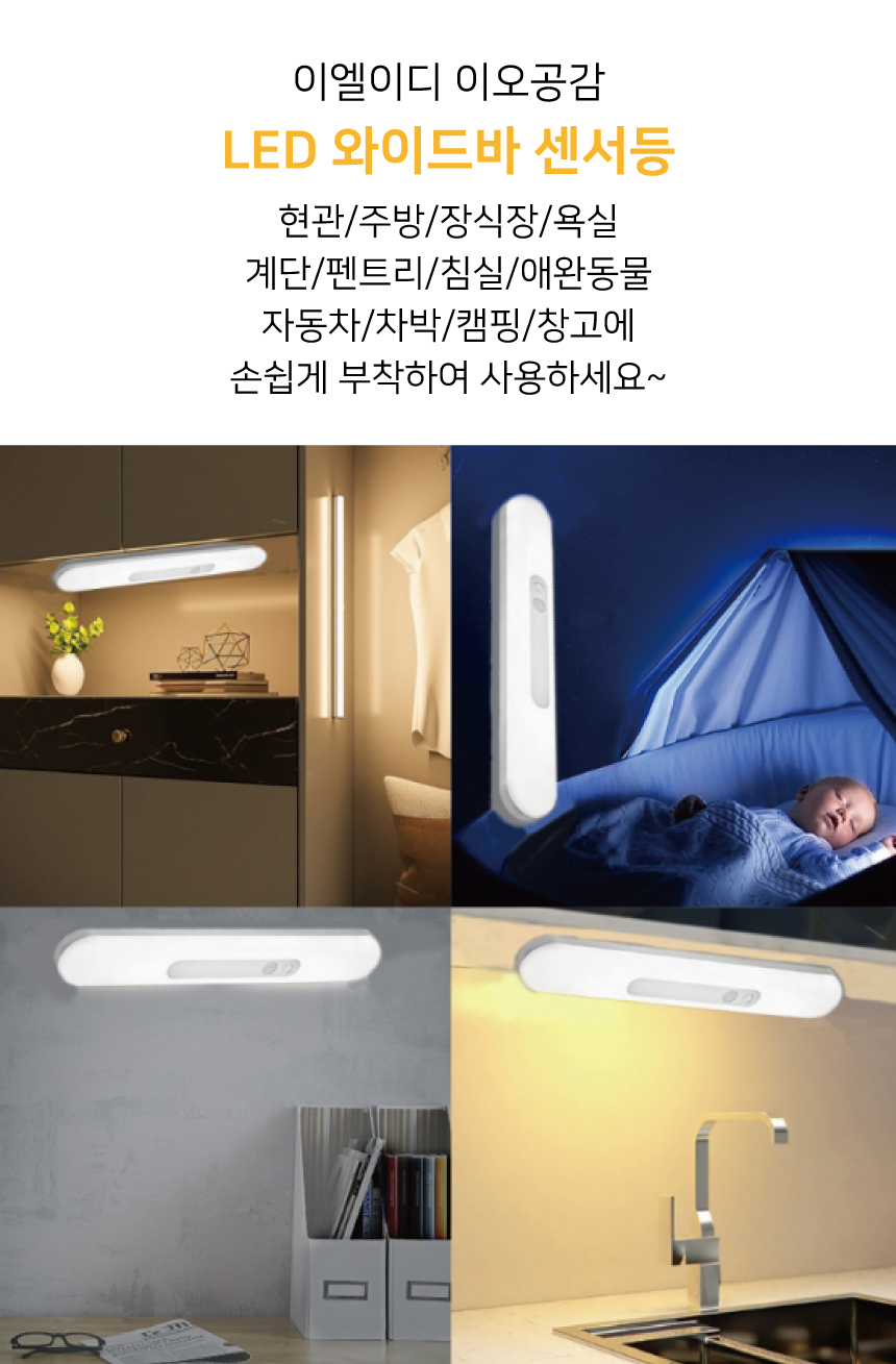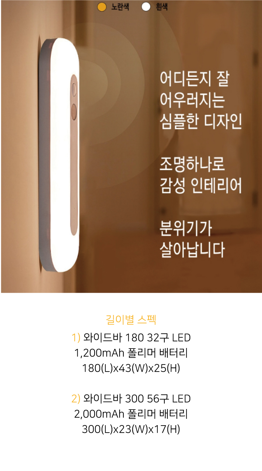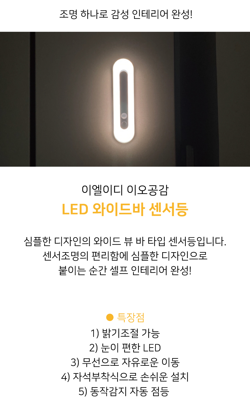 이엘이디 무선센서등 와이드 LED 무드등 장식장 현관 거실 침실 수유등 수면등 붙이는조명