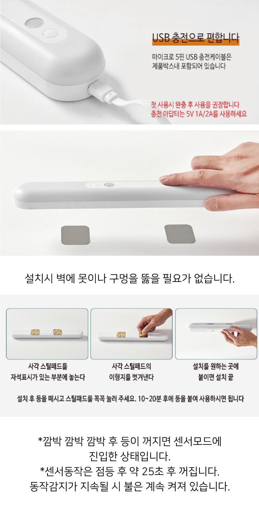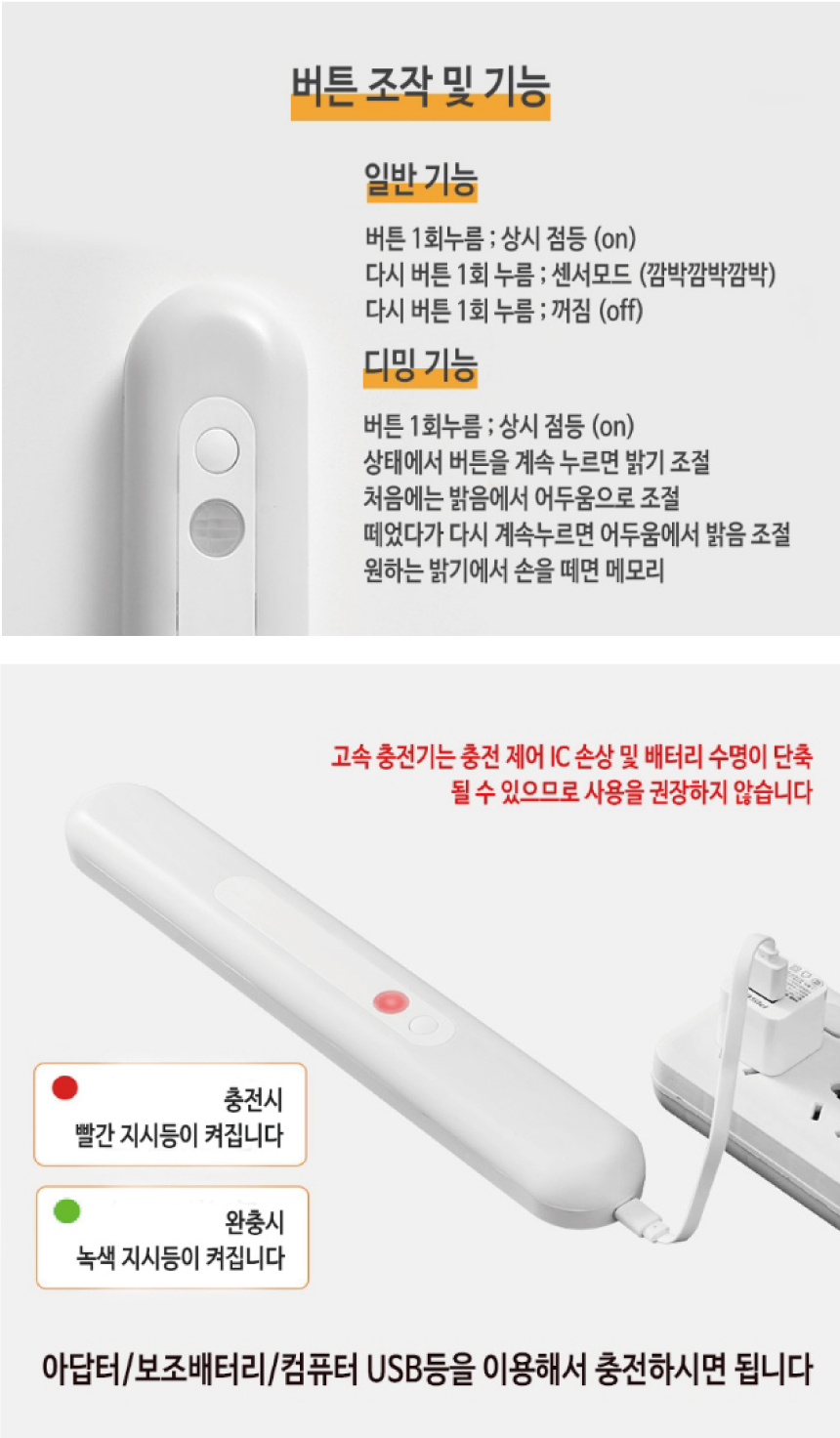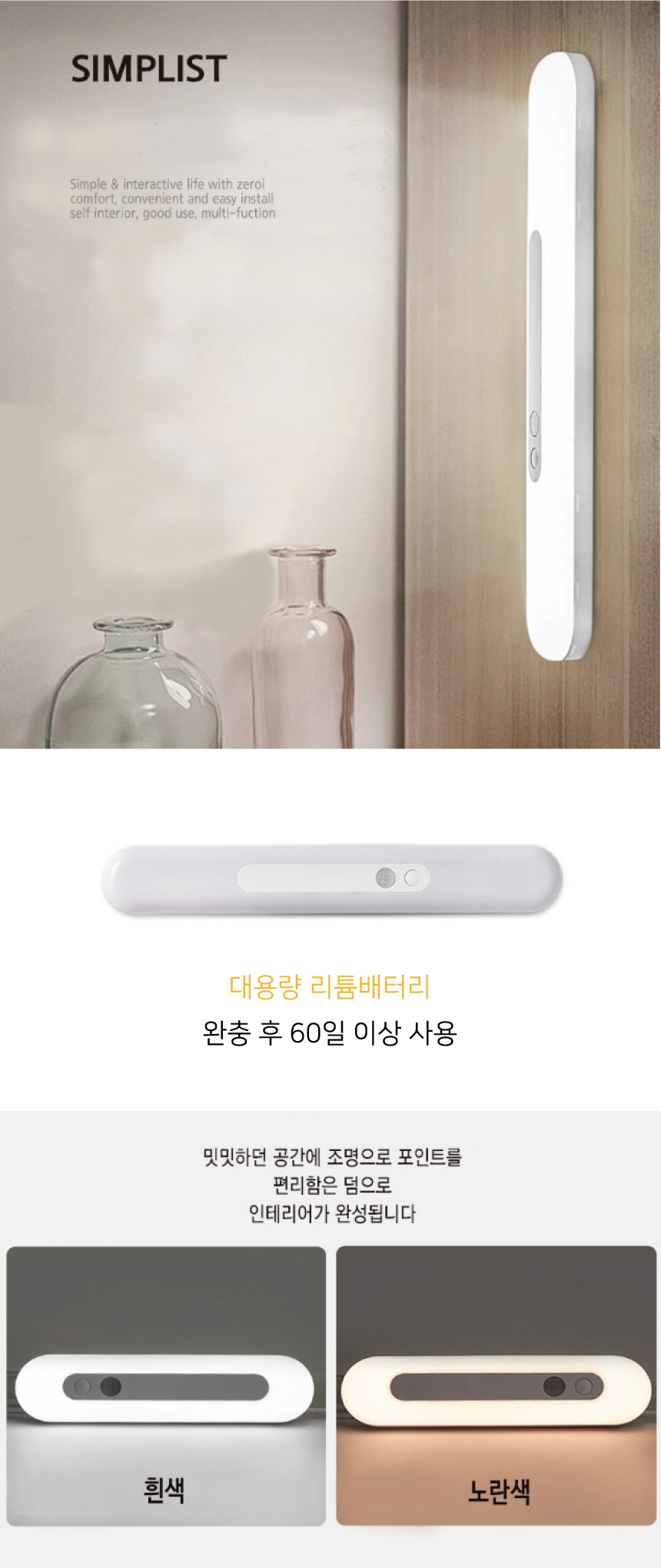 이엘이디 무선센서등 와이드 LED 무드등 장식장 현관 거실 침실 수유등 수면등 붙이는조명