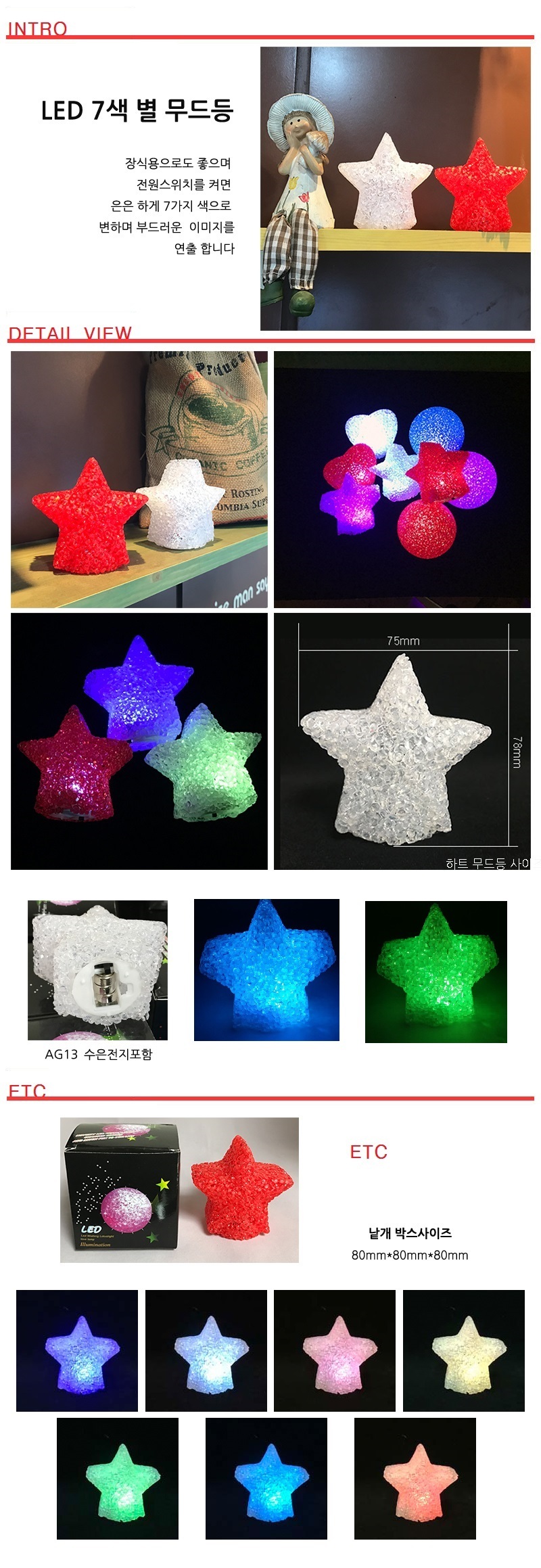 7색 LED 별 무드등 이미지/