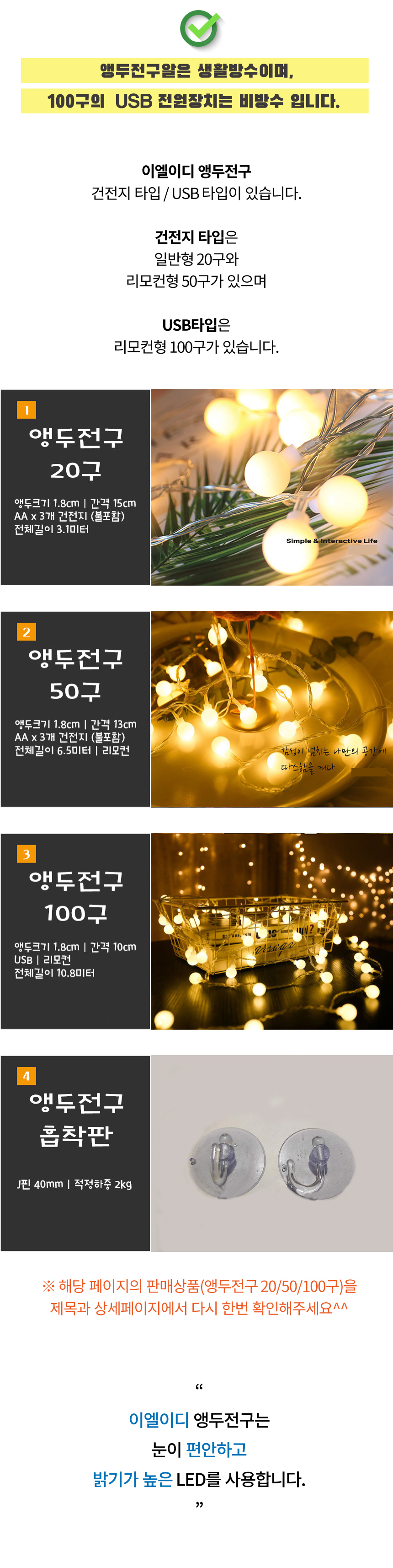 이엘이디 큰앵두전구 100구 차박알전구 캠핑전구 알전구 파티조명 감성캠핑조명 리모콘조명 무