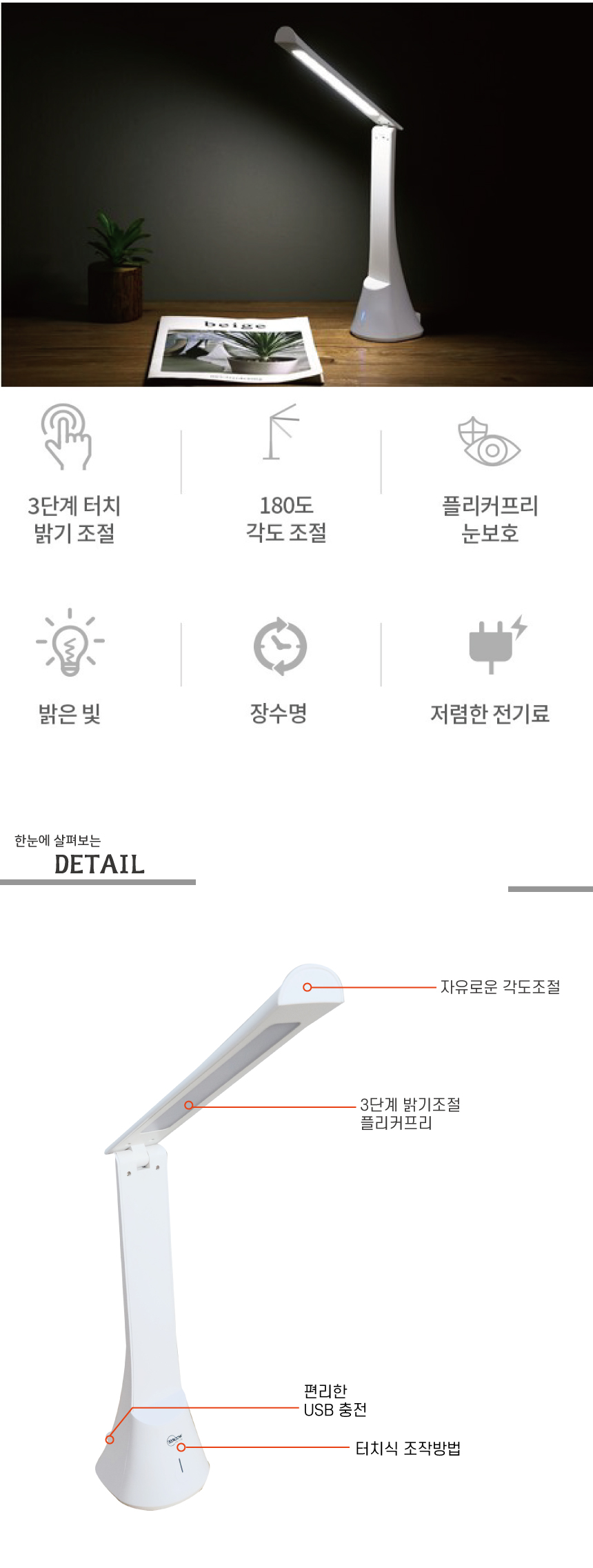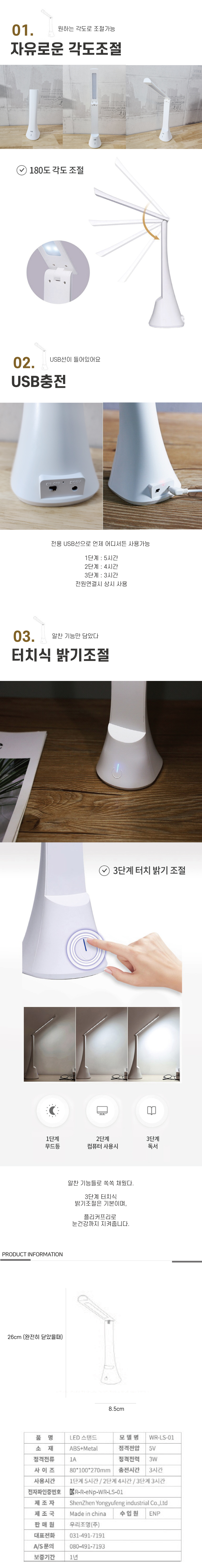 플랫 LED스탠드조명 3W 충전식 학생스탠드 휴대용스탠드