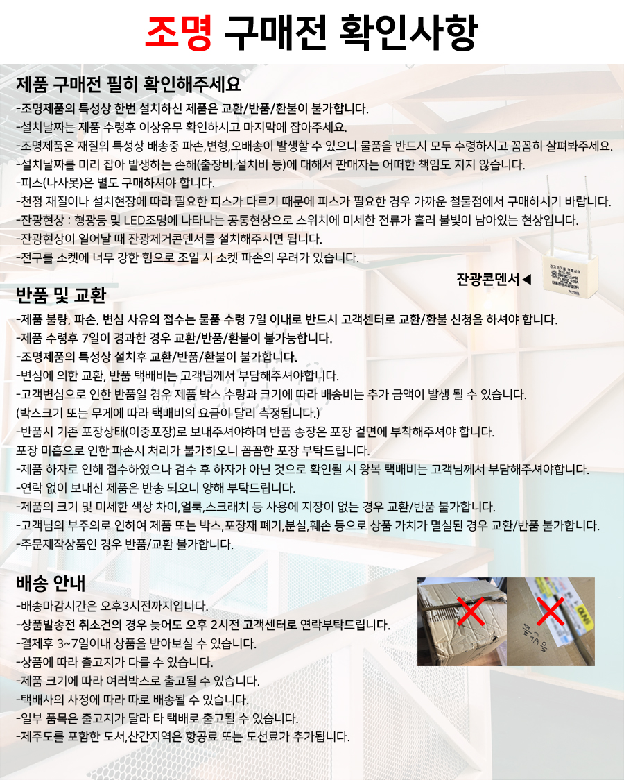 • 초기제품 이상의 경우 동일한 제품으로 1:1 교환원칙, 사용후 제품이상은 A/S를 원칙으로 합니다.