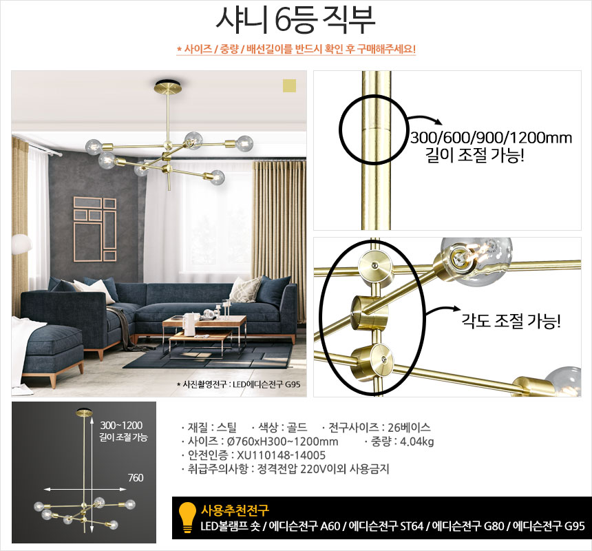 샤니 6등 직부/인테리어조명/식탁등/직부등/카페/펜던트