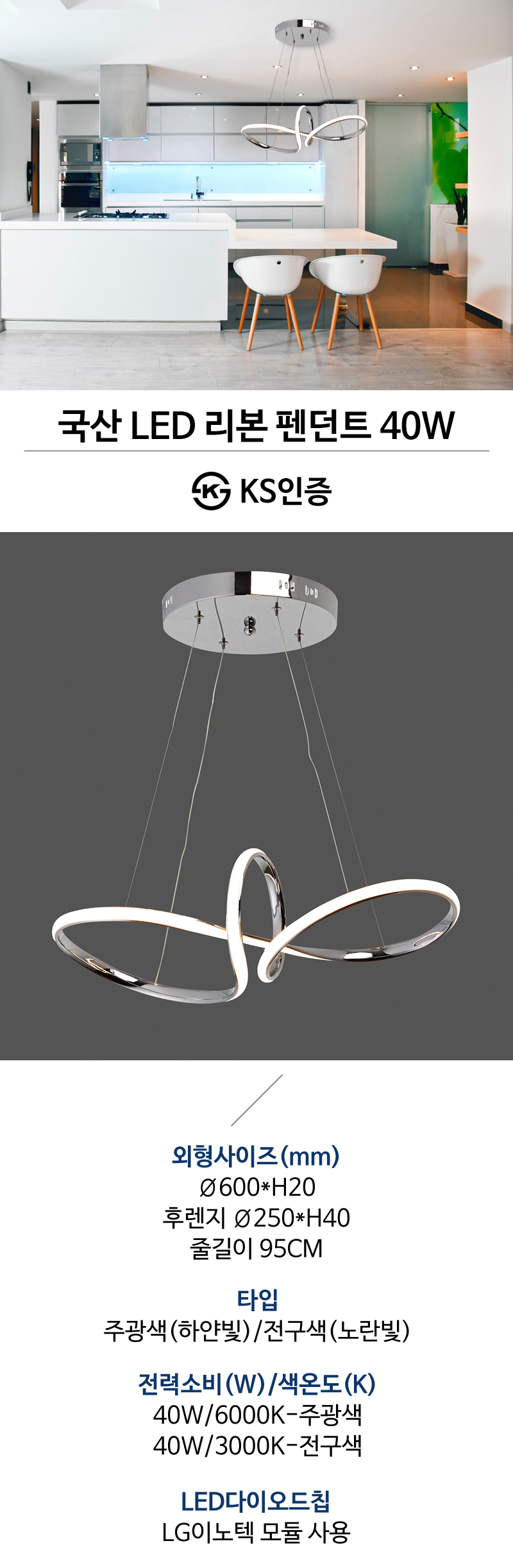 • 품명 및 모델명국산 LED 리본 펜던트 40W 주광색 전구색 KS인증