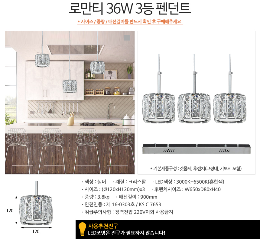 • 품명 및 모델명LED 로만티 3등 펜던트