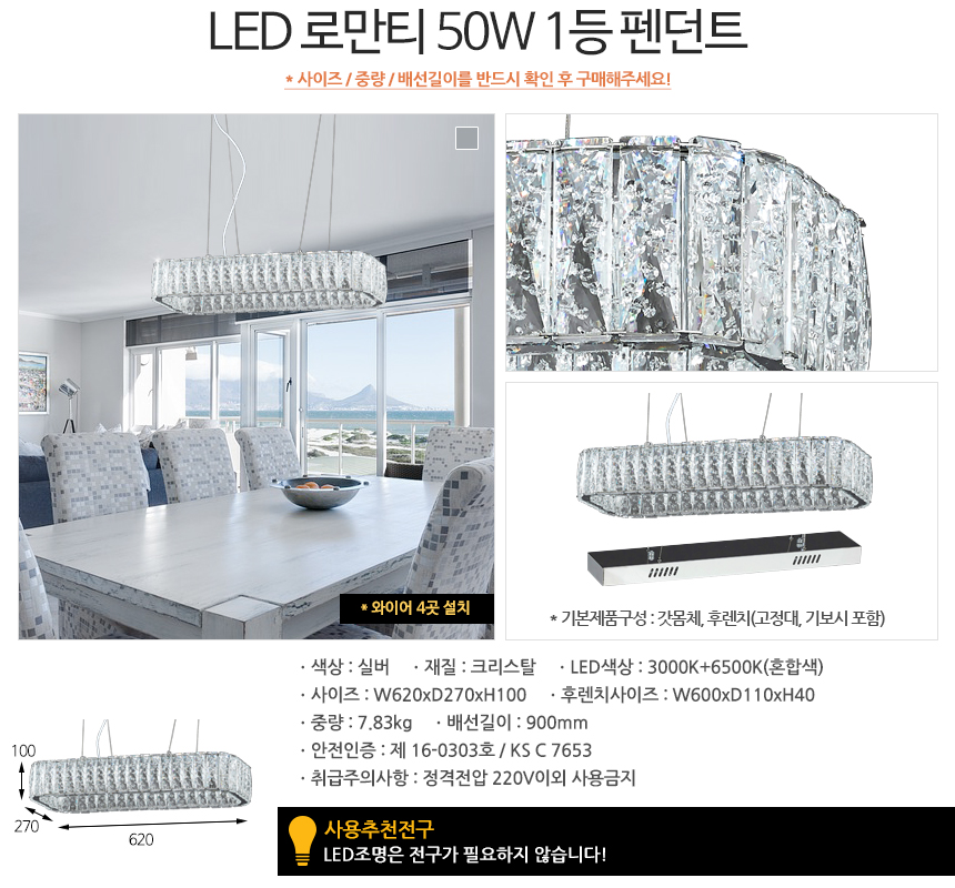 • 품명 및 모델명LED 로만티 50W 1등 펜던트