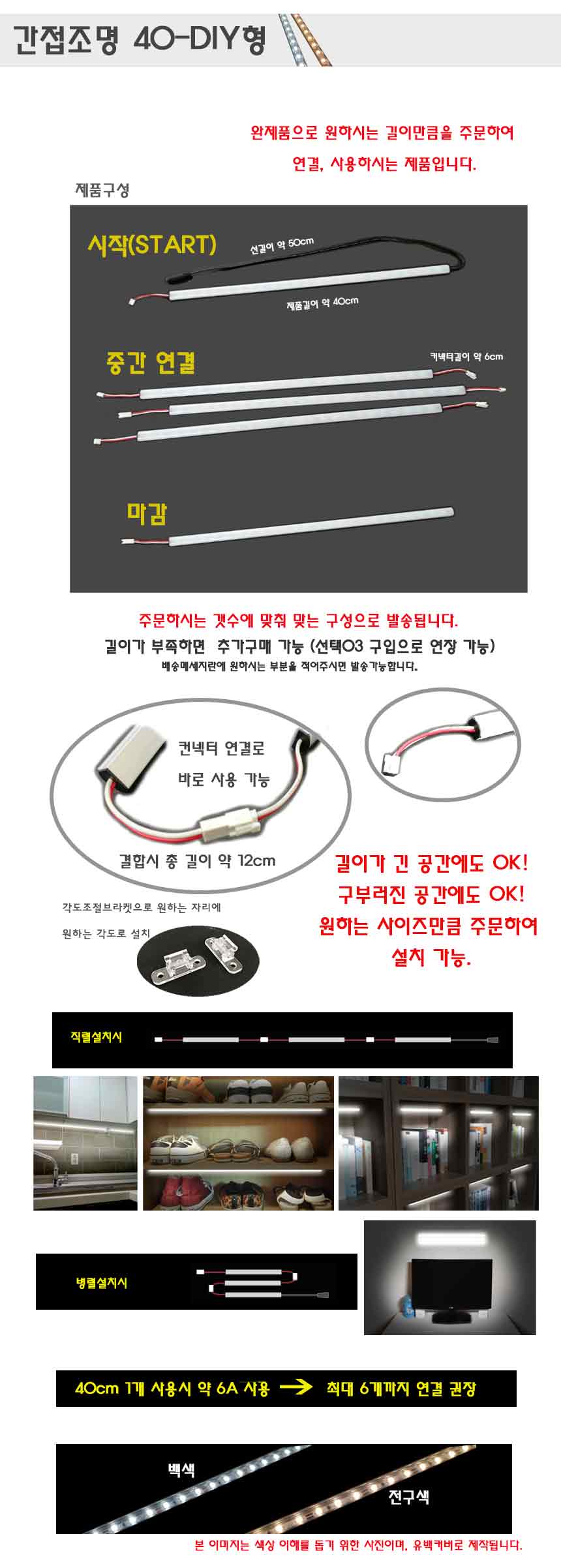 DIY형 40 간접LED 조명/LED/간접조명/주방등/보조조명/DIY/다용도등/터치등/피규