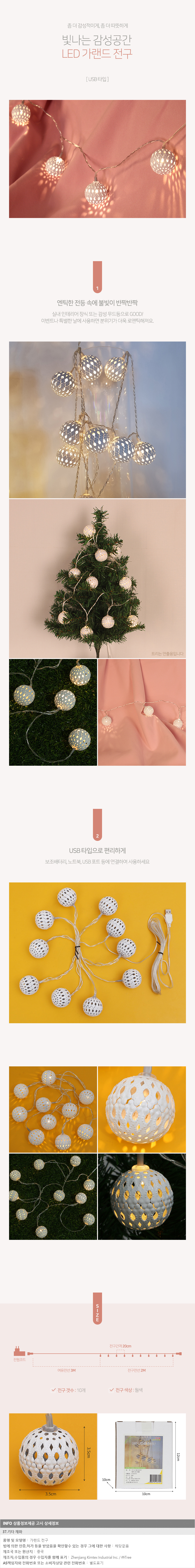 10구 USB LED 화이트볼 가랜드 전구(웜색) (2M) 이미지/