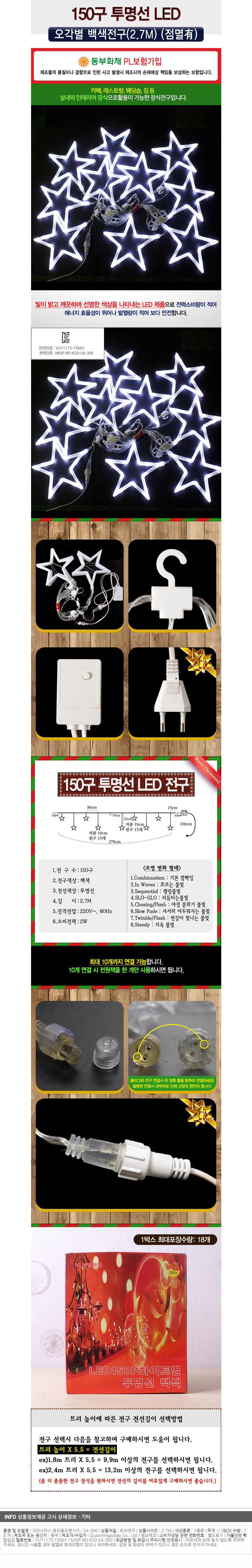 150구 투명선 LED 화이트별 백색전구(2.7M) (전원잭포함) (연결가능) 이미지/
