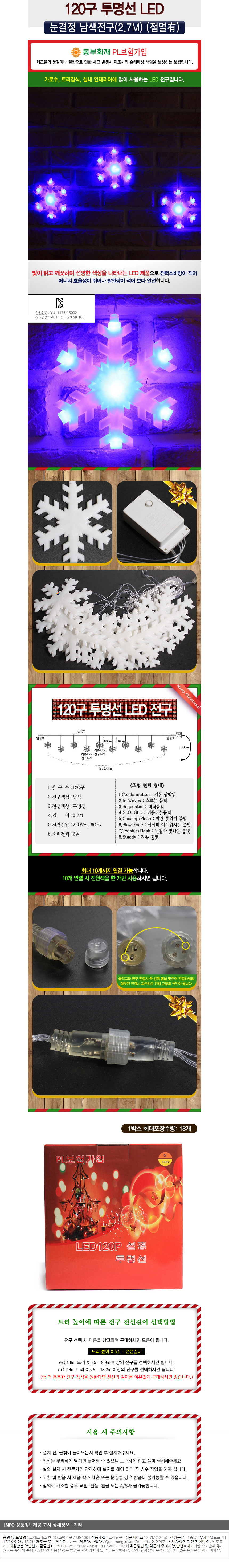 120구 투명선 LED 눈결정 남색전구(2.7M) (전원잭포함) (연결가능) 이미지/