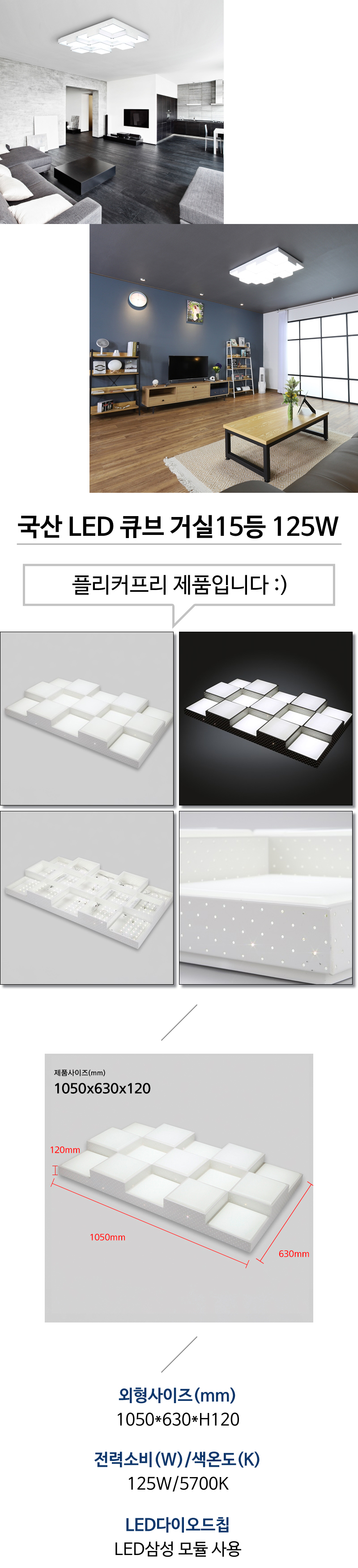 • 품명 및 모델명국산 LED 큐브 거실15등 125W 화이트