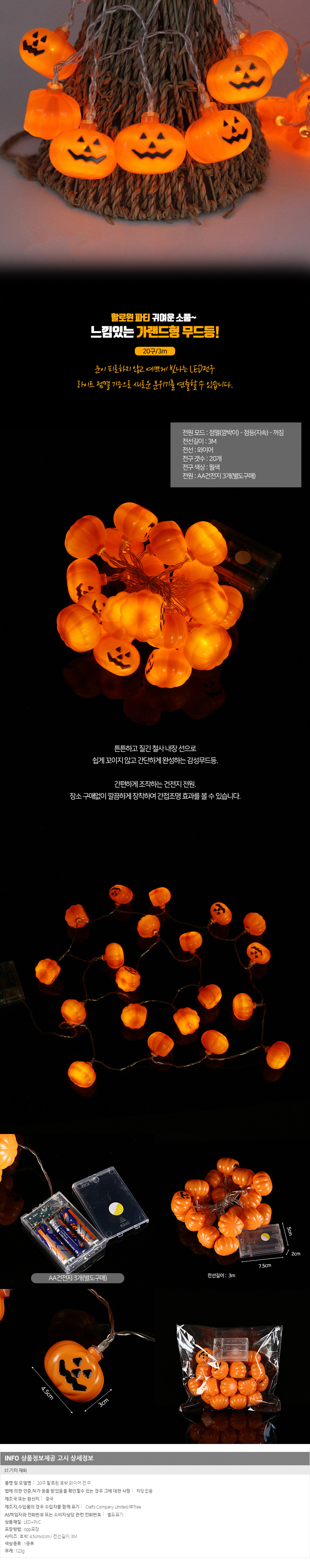 할로윈 LED 호박가랜드 (20구) 차박 캠핑 분위기 장식 무드등