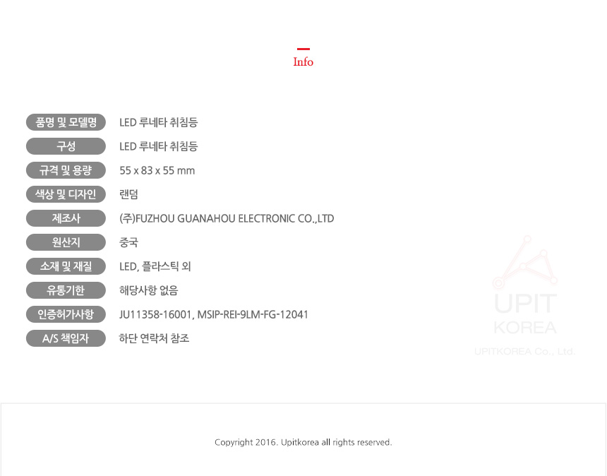 1. 품명 및 모델명 : 상세정보별도표시