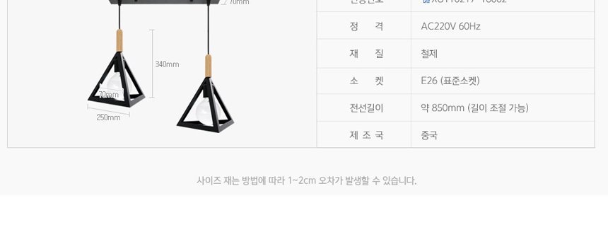 우드칸델라 2등인테리어 조명 식탁등 거실등