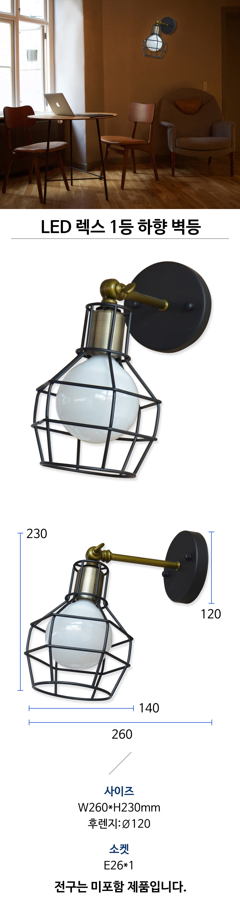 • 품명 및 모델명LED 렉스 1등 하향 벽등