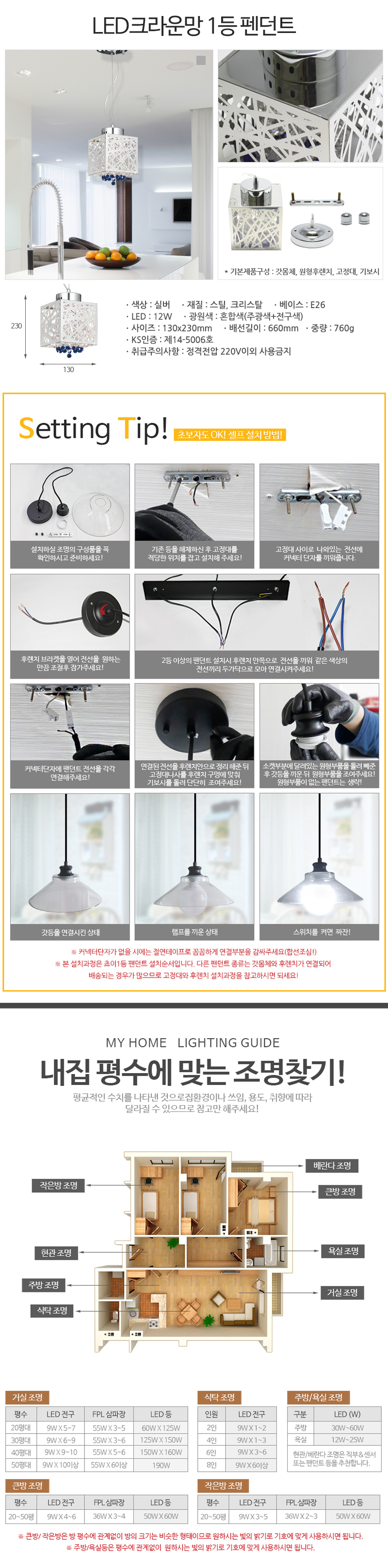 • 품명 및 모델명LED크라운망 1등 펜던트