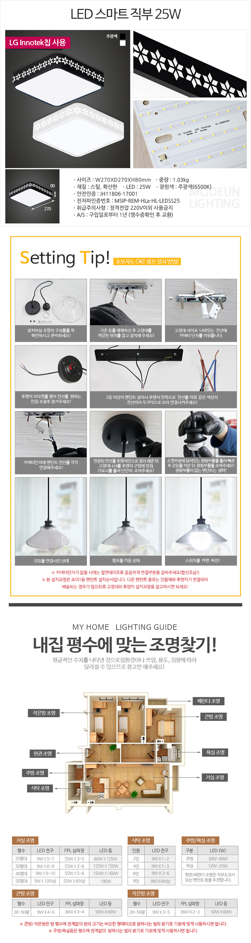 LED 스마트 직부 25W/직부등/천장등/LED등/사각직부등/현관등/베란다등/복도등