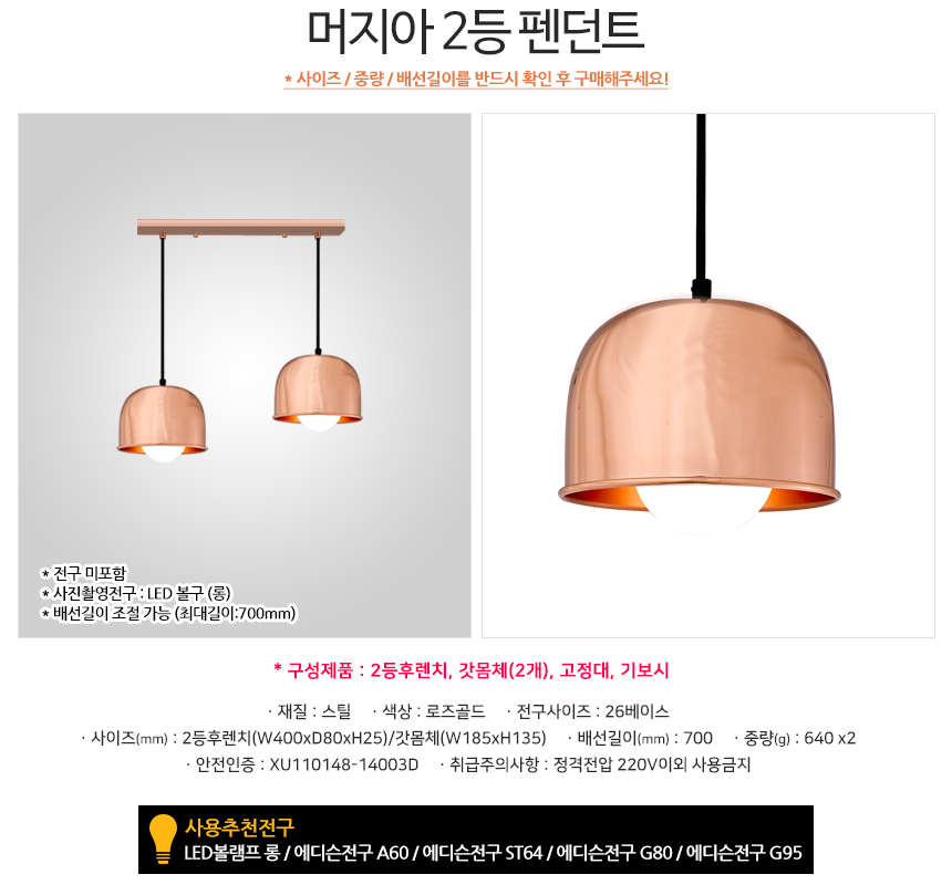 머지아 2등 펜던트/식탁등/인테리어조명/주방등/펜던트조명/셀프인테리어/조명 이미지/