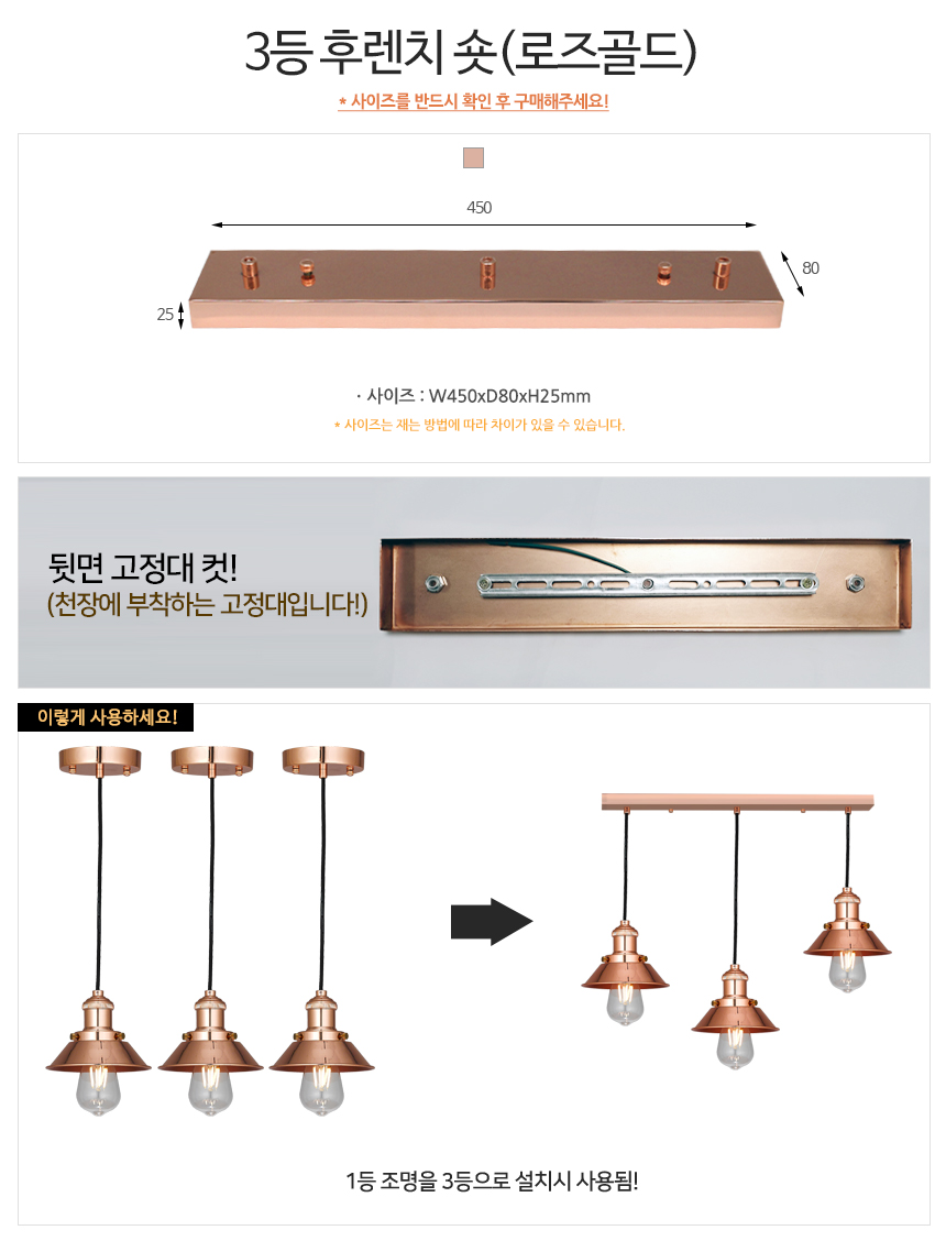 3등 후렌치 숏 - 로즈골드/인테리어조명/펜던트조명/식탁등/조명기구/후렌치/인테리어소품 이미지/