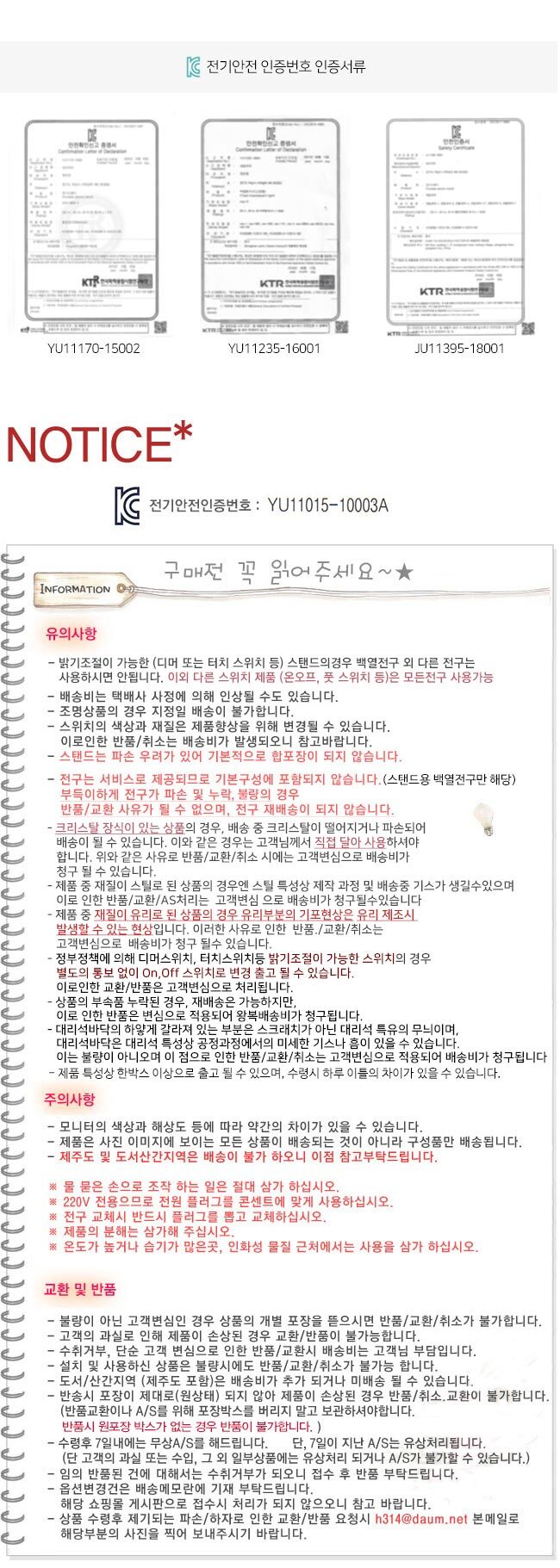 • 초기제품 이상의 경우 동일한 제품으로 1:1 교환원칙, 사용후 제품이상은 A/S를 원칙으로 합니다.