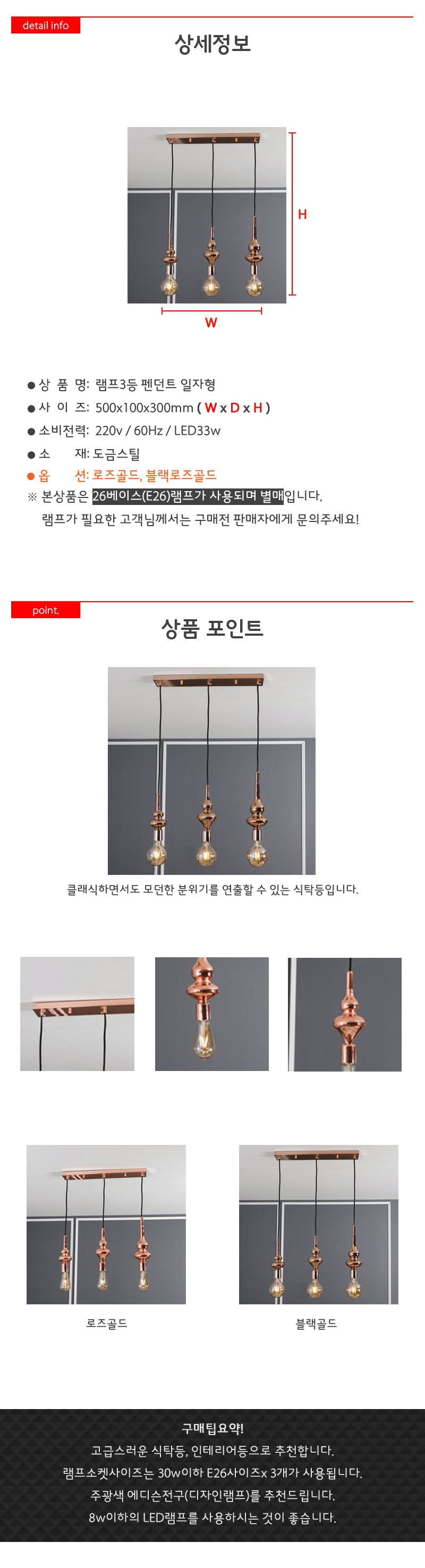 <상품명 : 램프3등 펜던트 일자형 33W LED 11Wx>