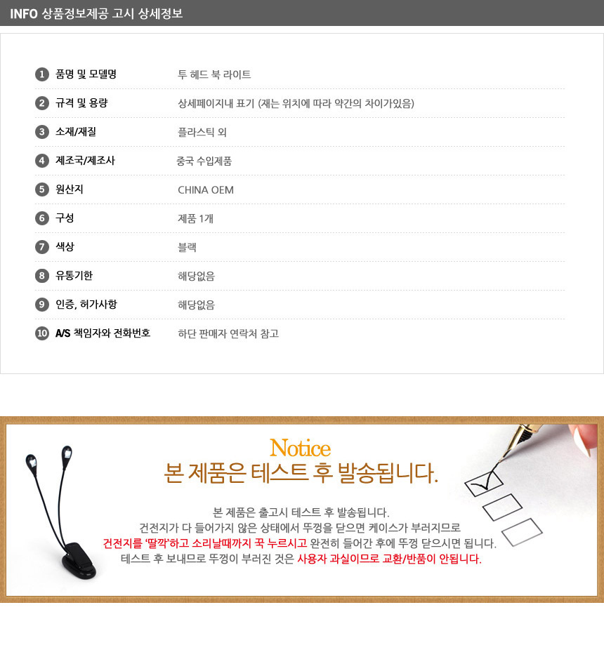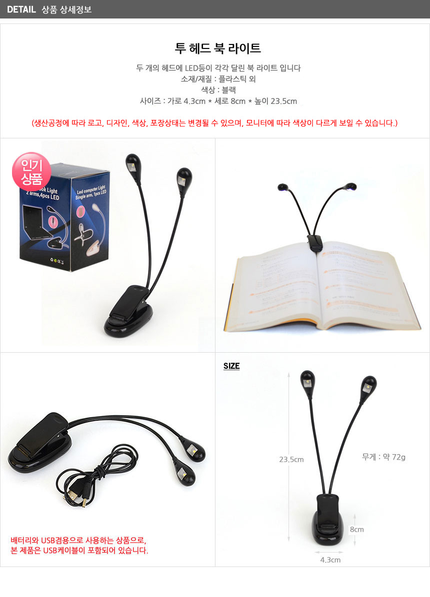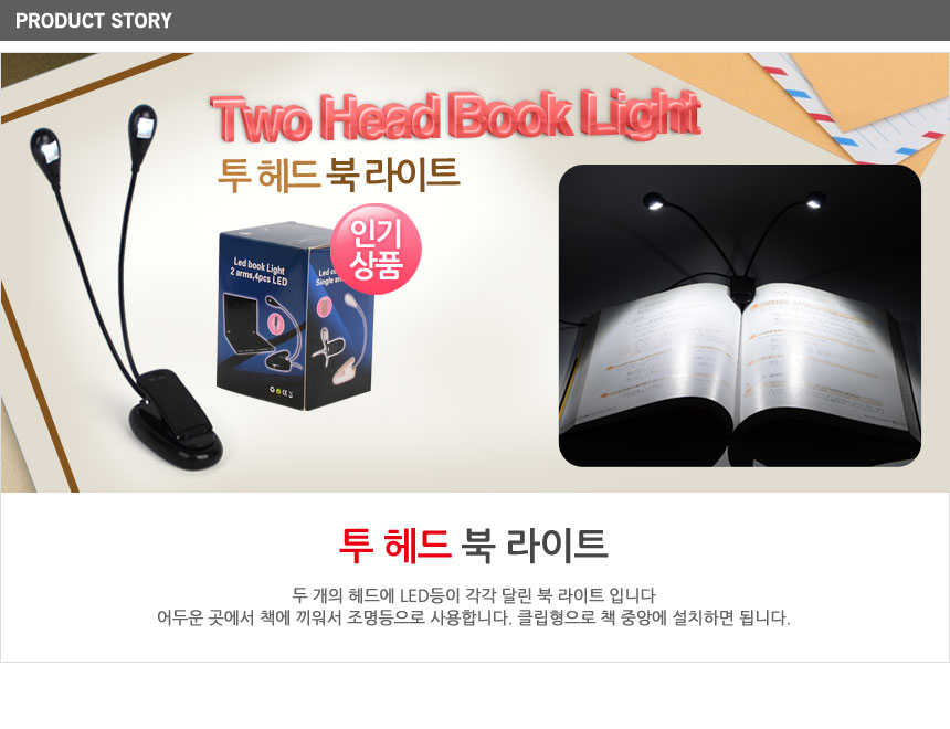 투헤드 LED 북라이트 독서등 이미지/