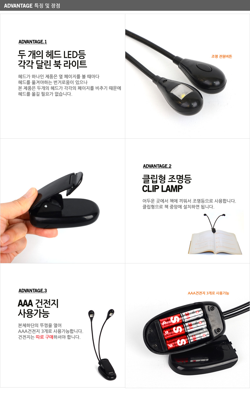 투헤드 LED 북라이트 독서등