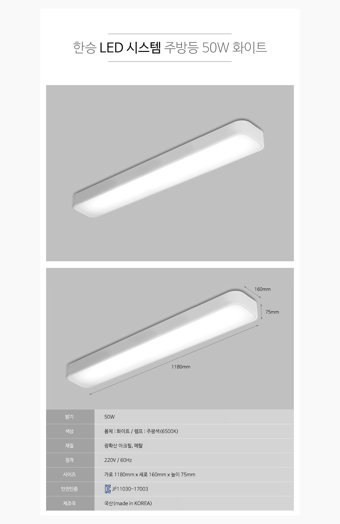 인테리어 홈조명 무타공 LED주방등 50W 화이트
