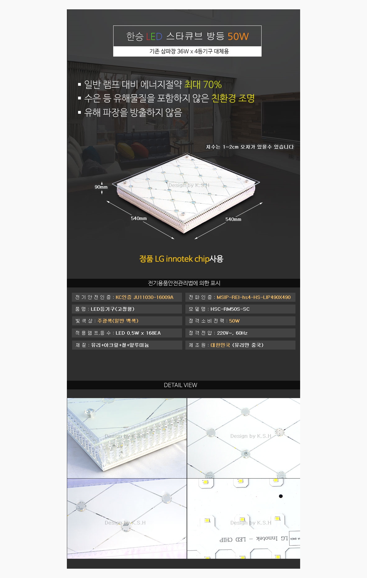 인테리어 홈조명 스타큐브 LED방등 50W 이미지/