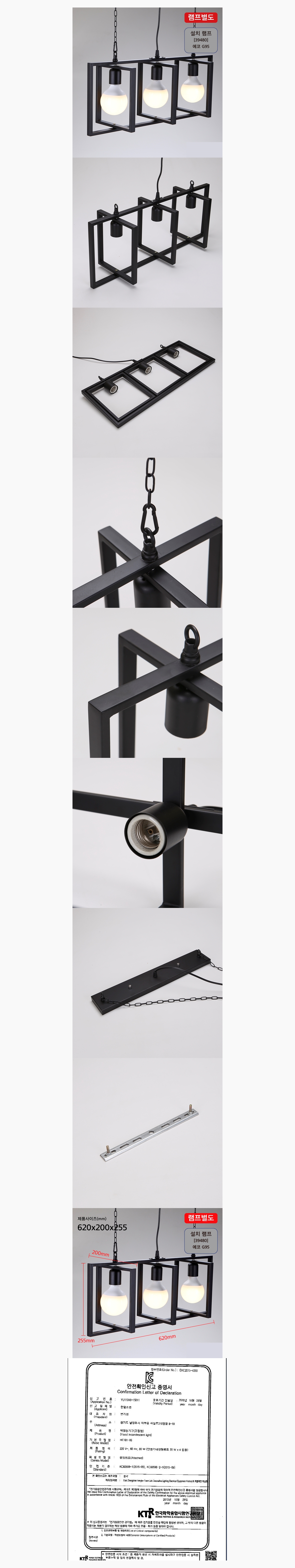 인테리어 조명 이디야 3구 펜던트등 1.2m 블랙