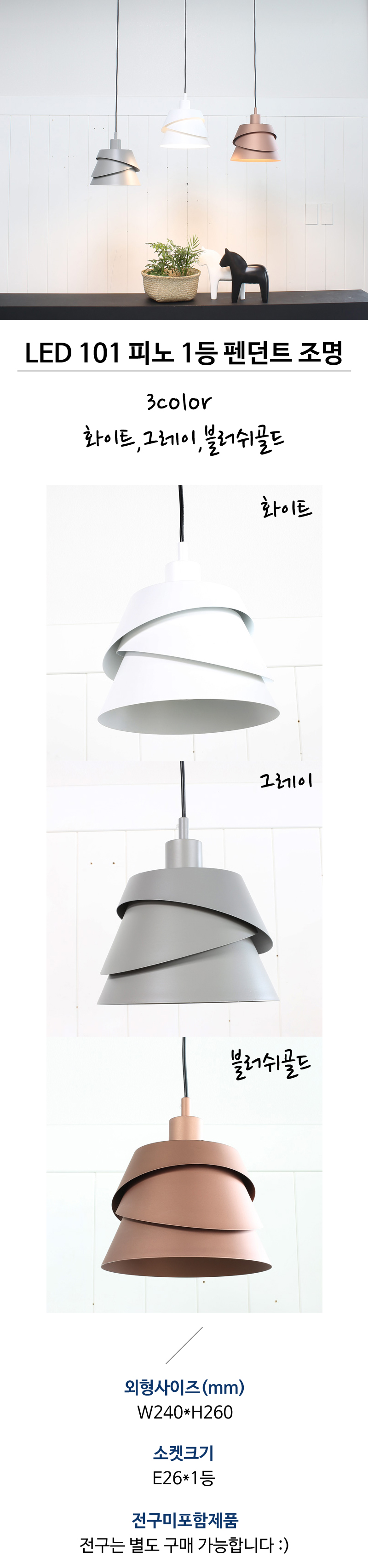 • 품명 및 모델명LED 101 피노 1등 펜던트 조명 3color