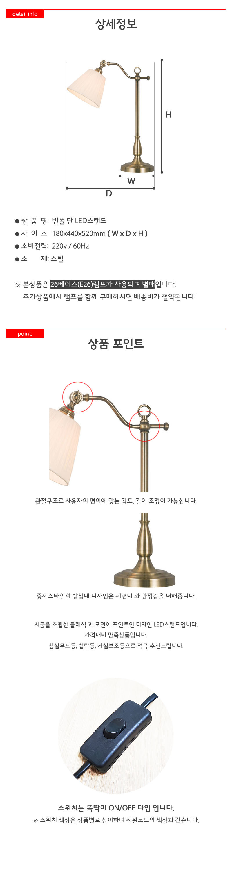 <상품명 : 빈폴 단 LED 단스탠드 스텐드등 형광램프 투>