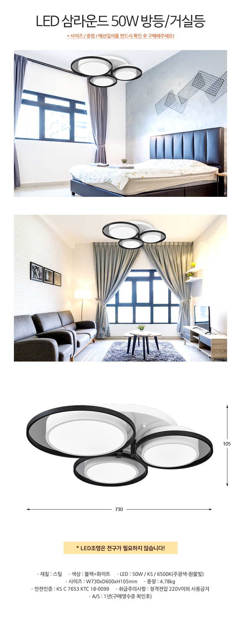 • 품명 및 모델명LED 삼라운드 50W 방등거실등