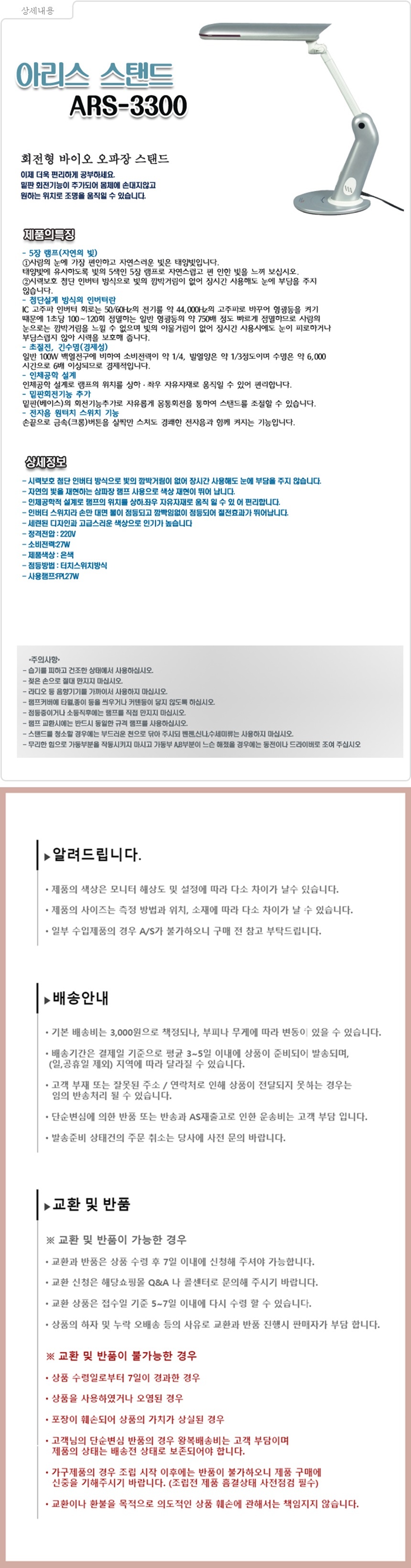 • 초기제품 이상의 경우 동일한 제품으로 1:1 교환원칙, 사용후 제품이상은 A/S를 원칙으로 합니다.