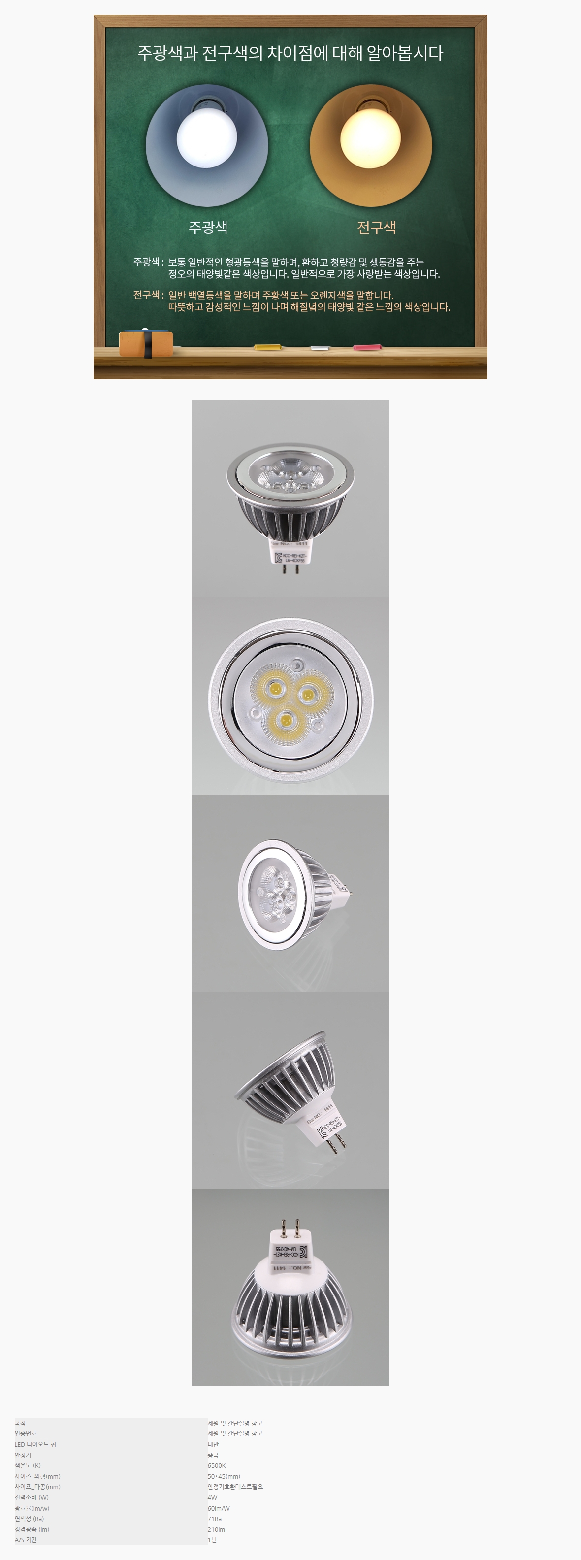인테리어 조명 MR-16 LED 램프 4W 12V 주광색