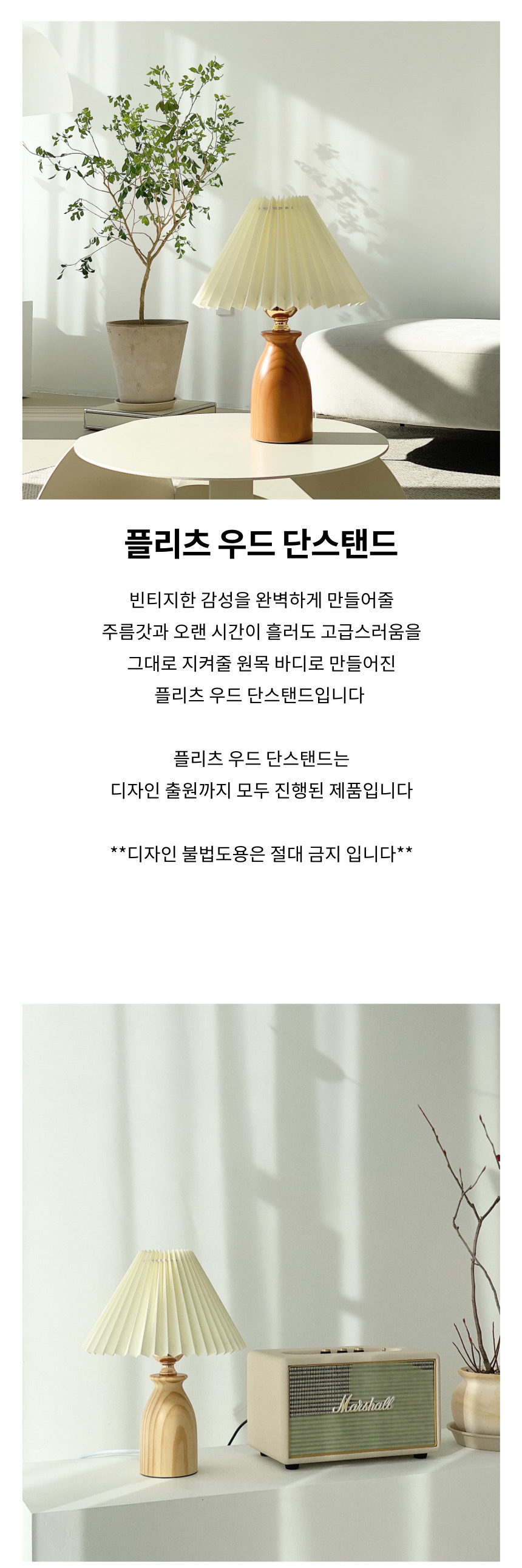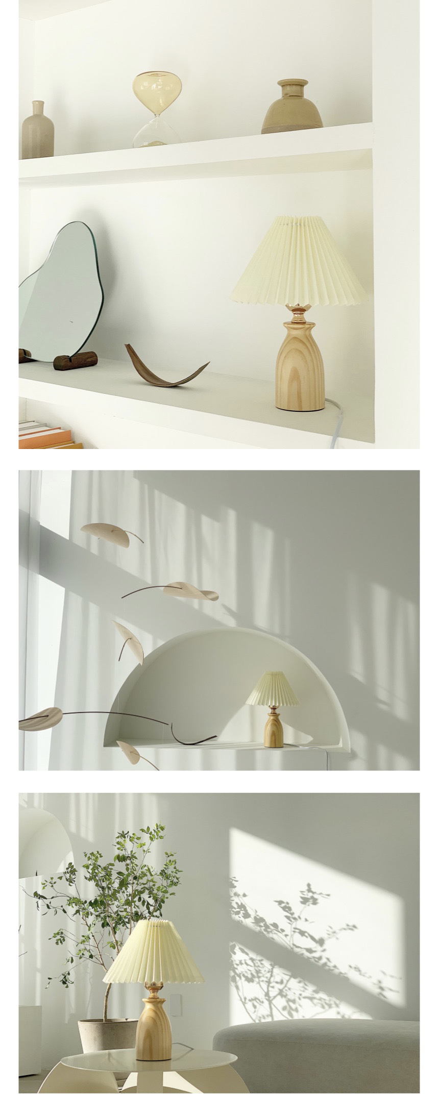 플리츠 우드 단스탠드 침실 탁상 조명 이미지/