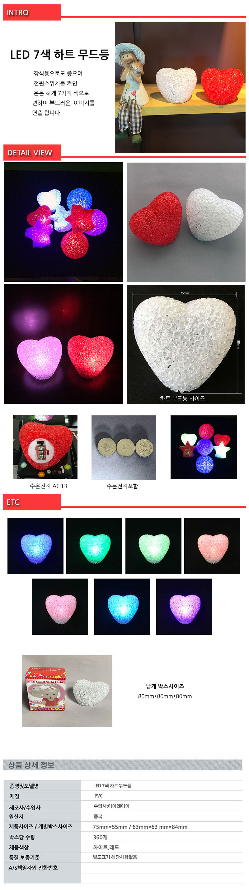 1. 품명 및 모델명 : LED 7색 하트 무드등