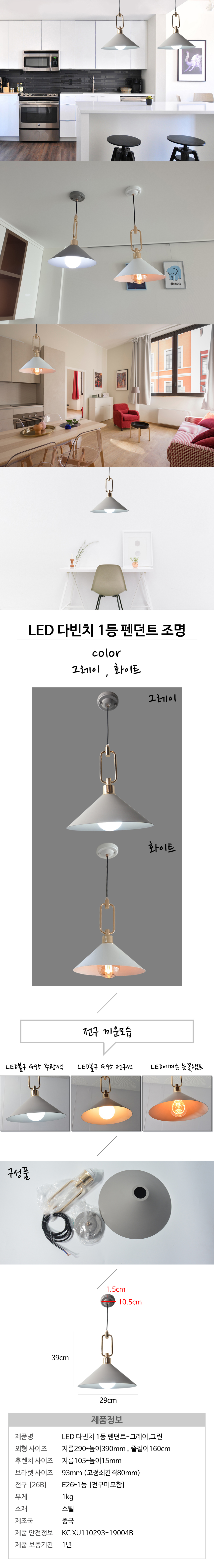 - 품명 및 모델명LED 다빈치 1등 펜던트 조명 그레이 화이트